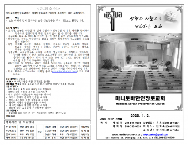 마니토바한인장로교회 웹사이트에 방문해 주셔서 감사합니다.