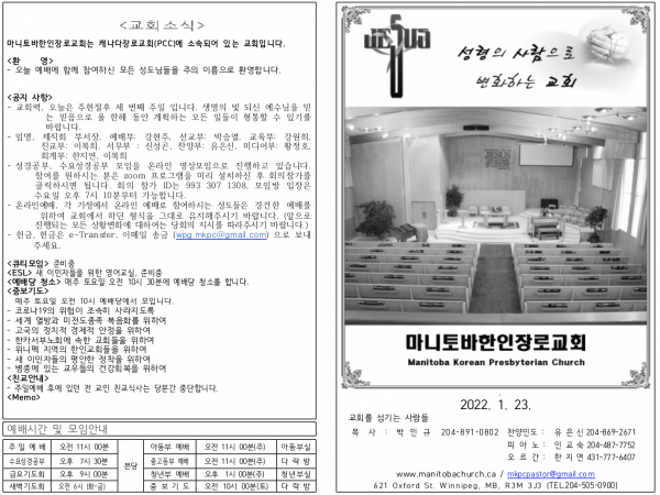 마니토바한인장로교회 웹사이트에 방문해 주셔서 감사합니다.