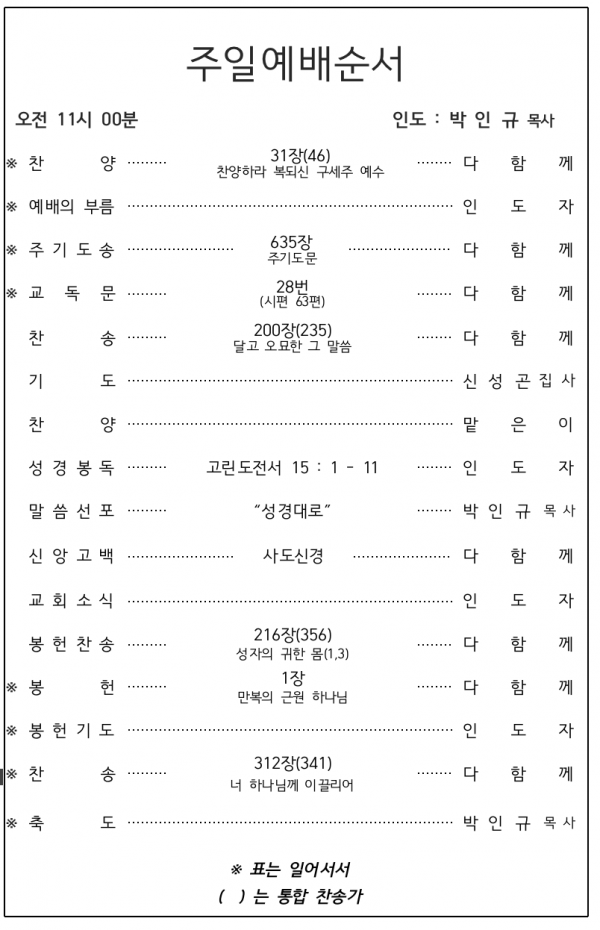 2026. 3. 15 주일예배 영상 및 주보
