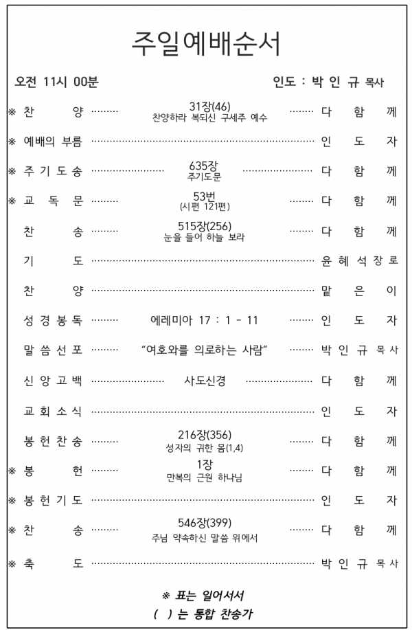 2026. 3. 15 주일예배 영상 및 주보