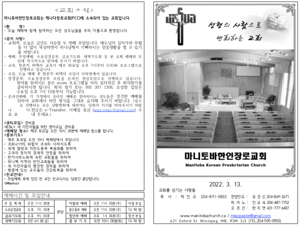 마니토바한인장로교회 웹사이트에 방문해 주셔서 감사합니다.