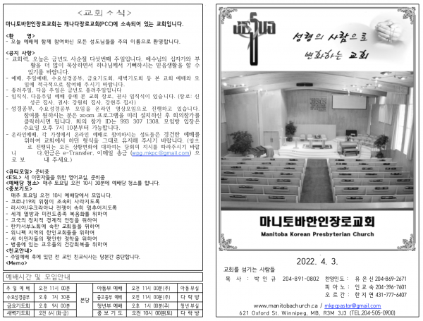 마니토바한인장로교회 웹사이트에 방문해 주셔서 감사합니다.