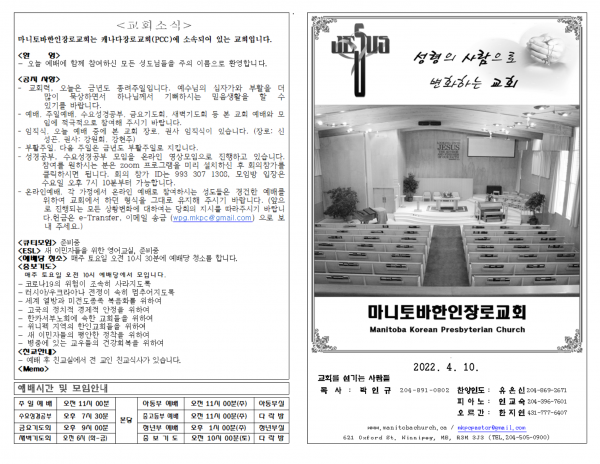마니토바한인장로교회 웹사이트에 방문해 주셔서 감사합니다.