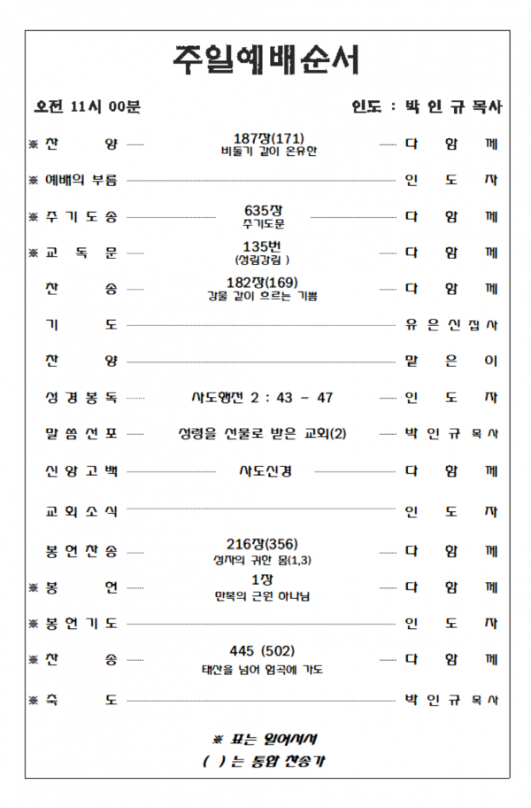 2026. 3. 15 주일예배 영상 및 주보