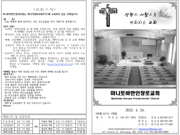 마니토바한인장로교회 웹사이트에 방문해 주셔서 감사합니다.