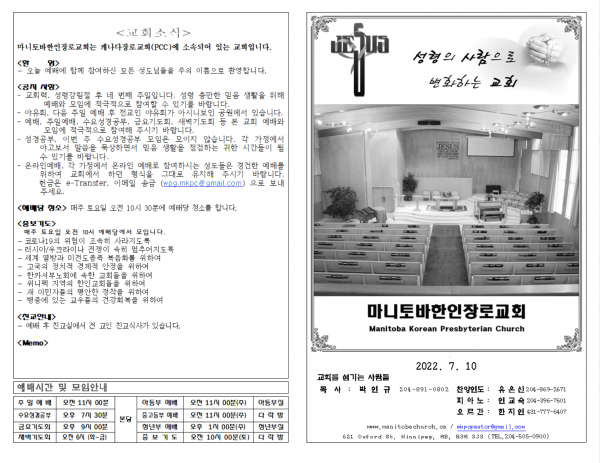 마니토바한인장로교회 웹사이트에 방문해 주셔서 감사합니다.