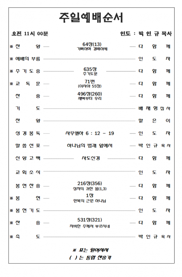2026. 3. 15 주일예배 영상 및 주보