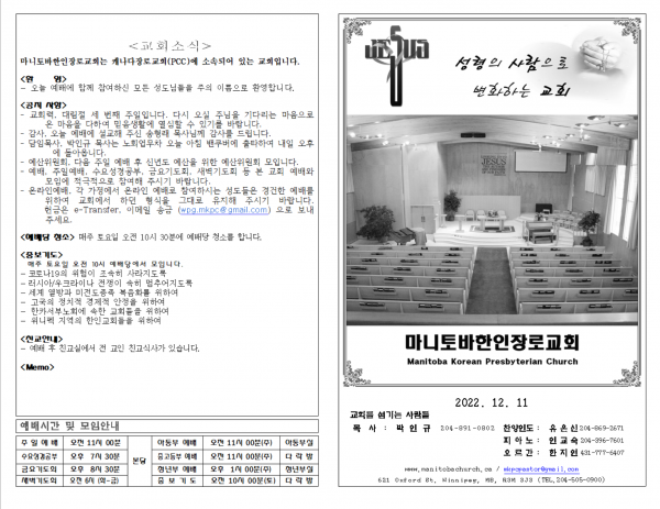 마니토바한인장로교회 웹사이트에 방문해 주셔서 감사합니다.