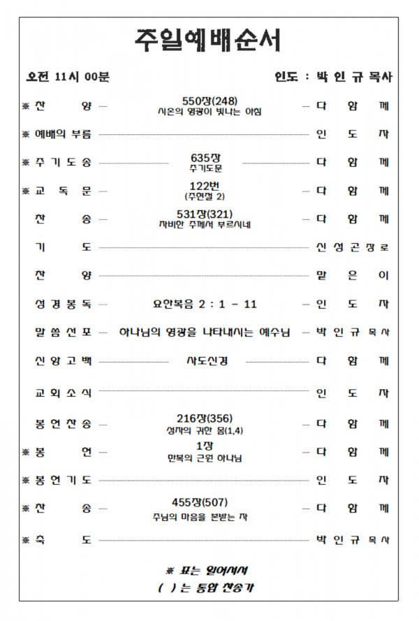 2026. 3. 15 주일예배 영상 및 주보