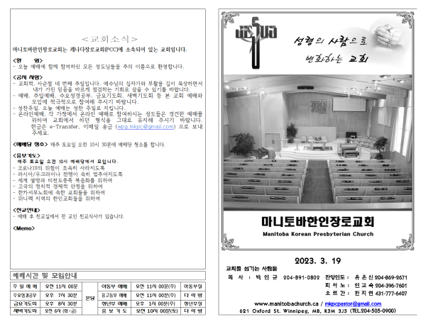 마니토바한인장로교회 웹사이트에 방문해 주셔서 감사합니다.