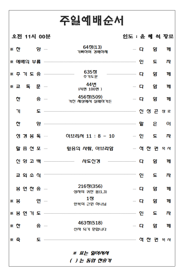 2023. 4. 23 주일예배 영상 및 주보