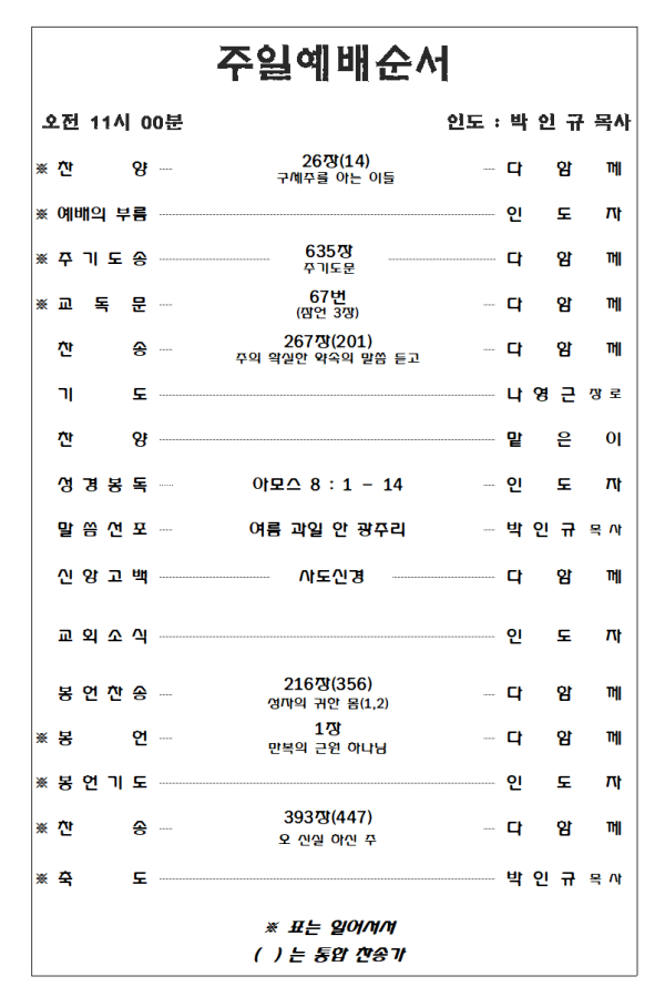 2023. 8. 6 주일예배 영상 및 주보