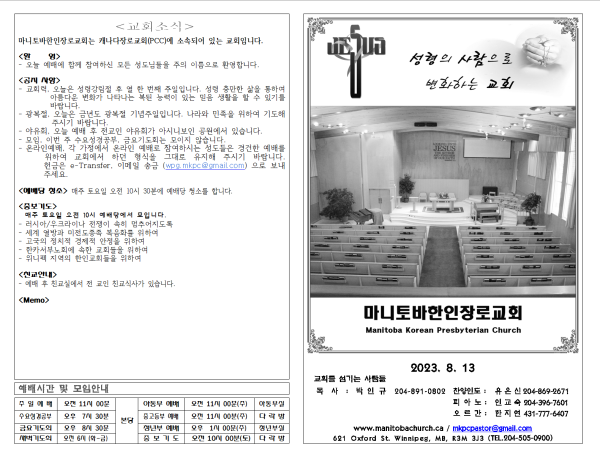 마니토바한인장로교회 웹사이트에 방문해 주셔서 감사합니다.