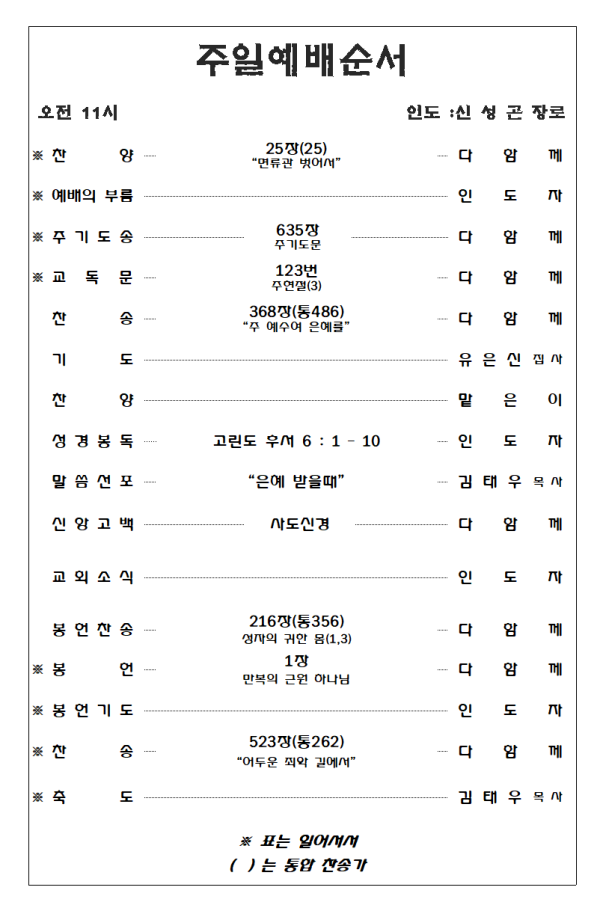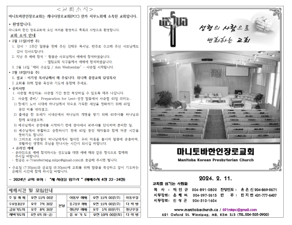 2024. 2. 11 주일예배 영상 및 주보