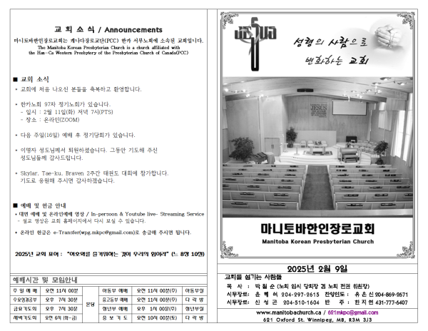 마니토바한인장로교회 웹사이트에 방문해 주셔서 감사합니다.