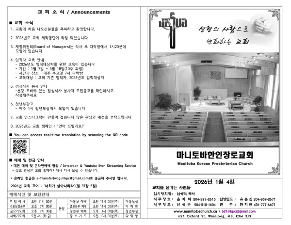 마니토바한인장로교회 웹사이트에 방문해 주셔서 감사합니다.