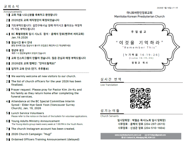 마니토바한인장로교회 웹사이트에 방문해 주셔서 감사합니다.