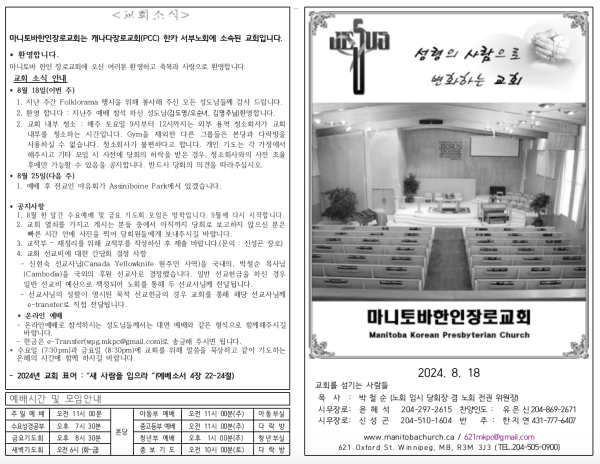 마니토바한인장로교회 웹사이트에 방문해 주셔서 감사합니다.