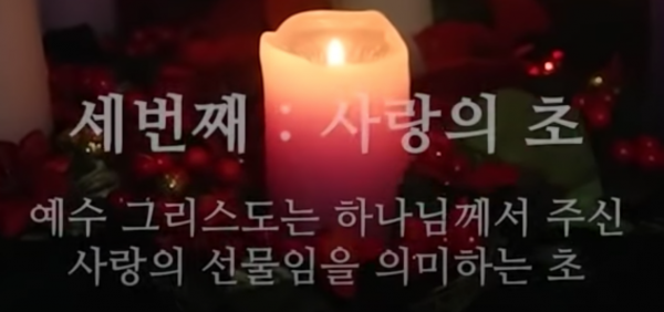 예수님의 사랑으로 우리의 주위를 돌아보며 어렵고 굶주리며 가난한 사람들에게 예수님의 사랑을 나누고 실천하며, 서로 기쁨으로 예수님을 기다리는 촛불입니다.
