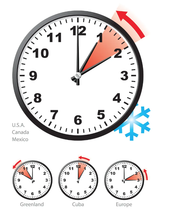 Sunday, November 5, 2023, 2:00:00 am clocks are turned backward 1 hour to