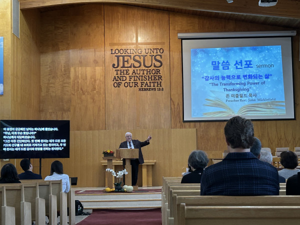 오늘 존 미클필드 목사님 설교 말씀에서 더 감사 해야할 조건과 왜 감사를 해야하는 지의 이유를 은혜 말씀 가운데 감사의 풍성함으로 우리 영혼을 채워 주셔서 감사한 추수감사절 예배를 올려 드려 감사했습니다.