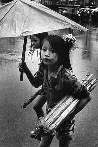 내가 지하철 입구에 다다르자 조그만 여자 아이가 우산을 팔고 있었다.