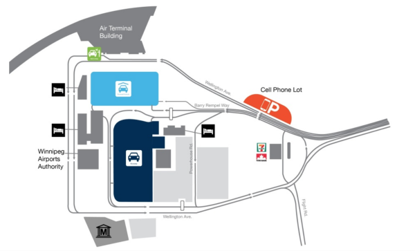 Winnipeg Richardson International Airport (YWG) -Cell Phone Lot waiting area(Picking up & dropping off)